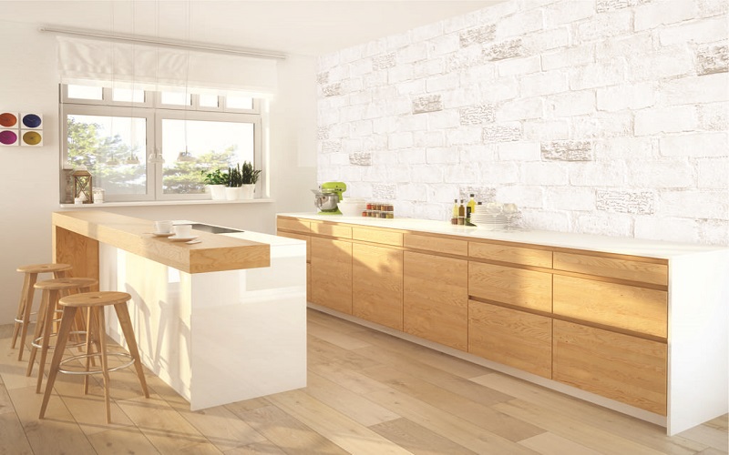 Ngay cả phòng bếp cũng có thể trang trí bằng giấy dán tường 3D, làm tăng sự hứng thú cho người nấu, làm cho không gian bếp thêm sinh động và hấp dẫn hơn.